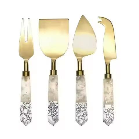 ชุดมีดสไลด์ชีสสแตนเลส 4 ชิ้น งานฝีมือเคลือบทอง สำหรับเสิร์ฟชีส