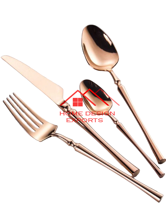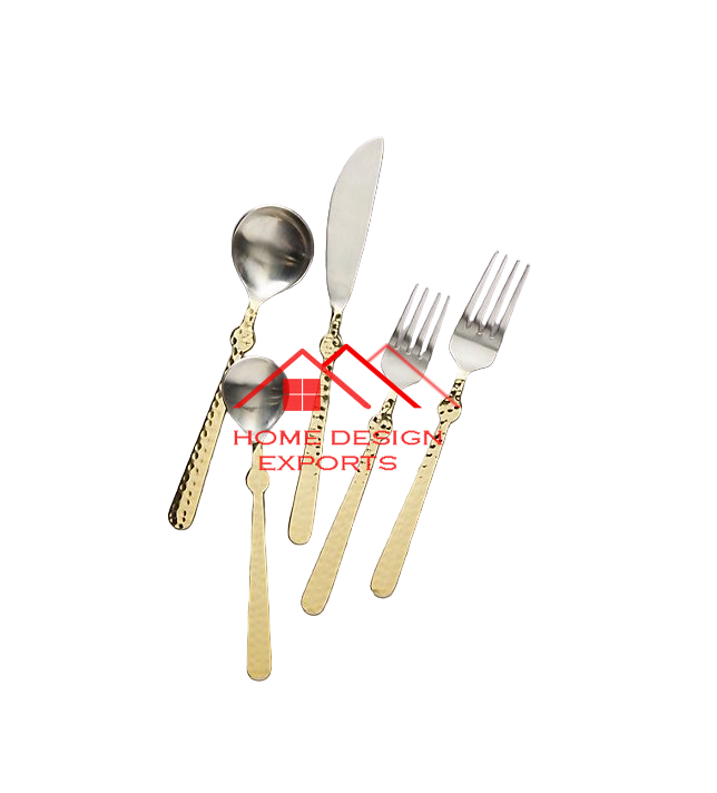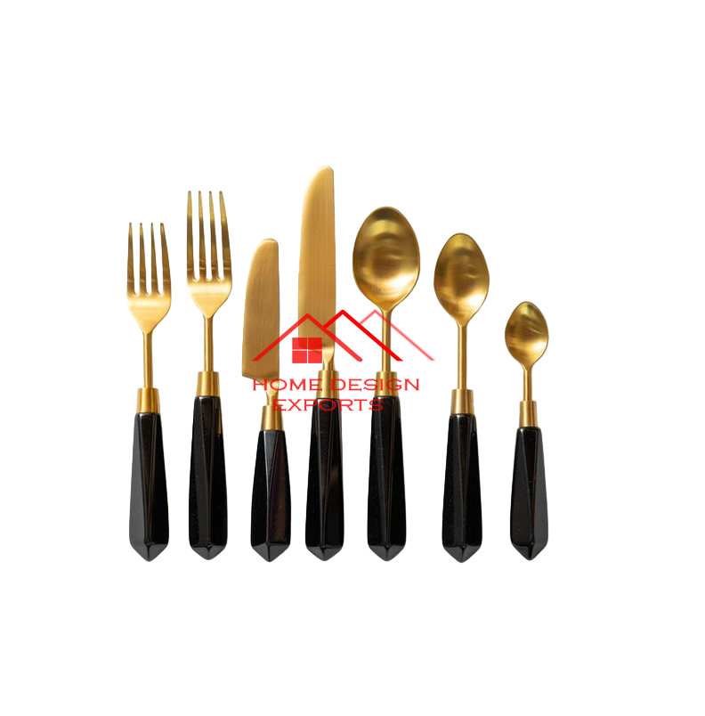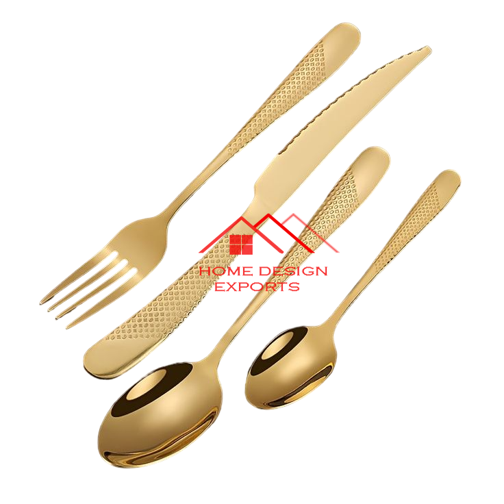 ชุดช้อนส้อมโลหะสำเร็จรูปสีทอง7ชิ้นมีดดีไซน์หรูหรา