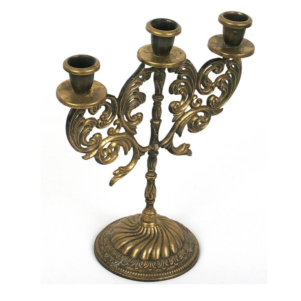 เชิงเทียนโลหะตกแต่งบนโต๊ะ3แขนสีทองเชิงเทียนที่วางเทียนแบบนูน
