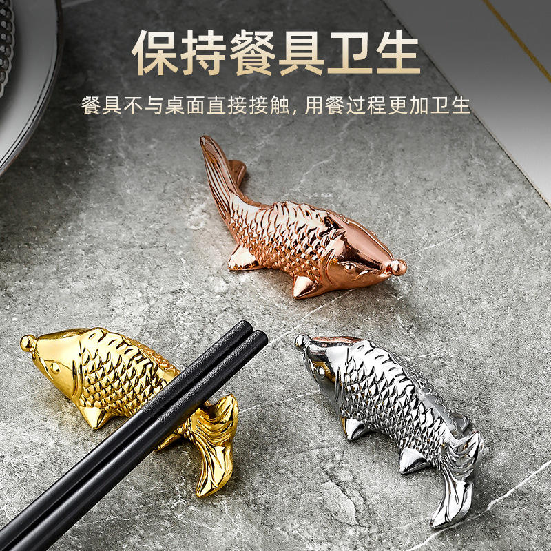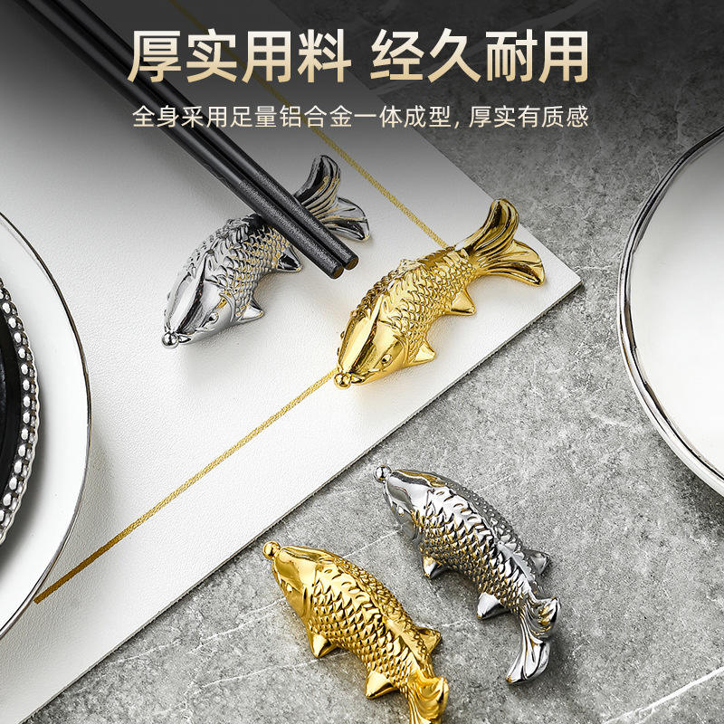 ที่วางตะเกียบรูปปลาสีทอง อลูมิเนียมอัลลอยด์ สำหรับโรงแรม ร้านอาหาร ชุด 6 ชิ้น พร้อมกล่องสี