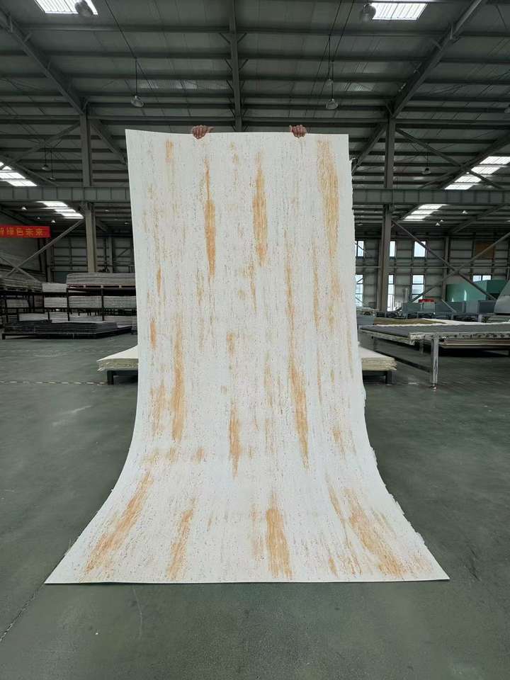 แผ่นหินยืดหยุ่นสีทอง เป็นมิตรกับสิ่งแวดล้อม ทนไฟ แผ่นบาง สำหรับตกแต่งผนังภายนอกแบบ 3 มิติ สำหรับการตกแต่งผนังน้ำหนักเบาสมัยใหม่