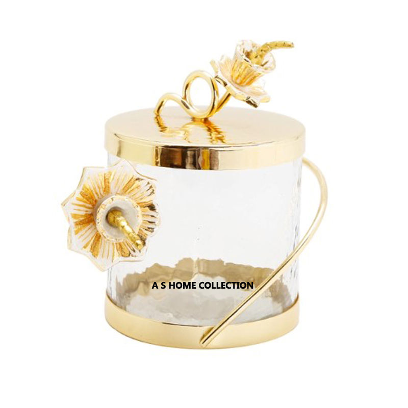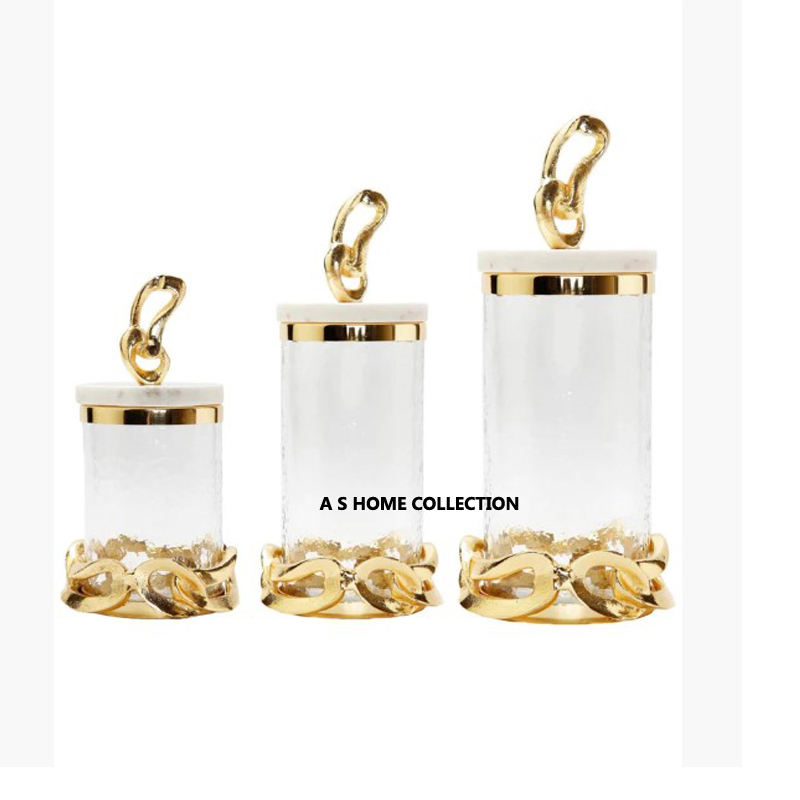 ชุดกระปุกเก็บโลหะสามกระป๋องดอกไม้สีทองสำหรับตกแต่งสูงตามความต้องการ