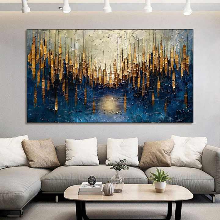 ภาพวาดสีน้ำมันนามธรรมลายป่าทองคำ ภาพวาดด้วยมือบนผ้าใบ ไม่มีกรอบ สำหรับตกแต่งบ้านพักตากอากาศ บ้านช็อตเตอร์ และผู้รักธรรมชาติ