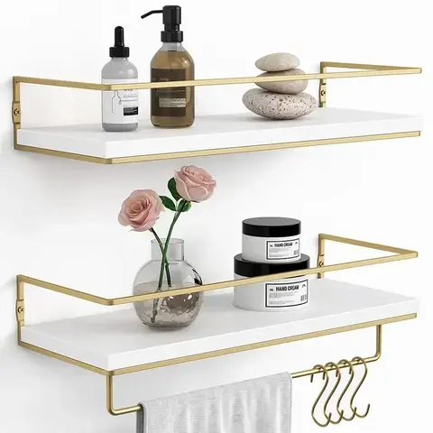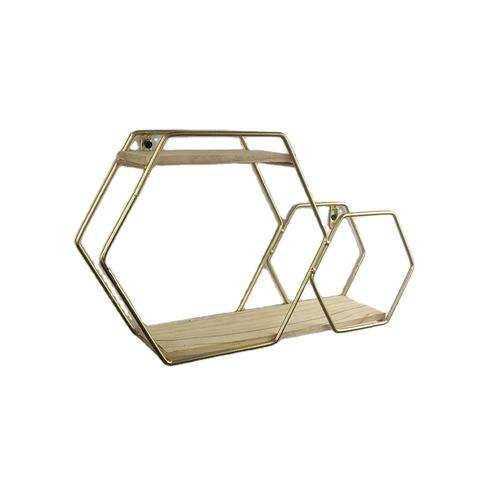 ชั้นวางของติดผนังรูปหกเหลี่ยมสีทองแบบใหม่ สำหรับตกแต่งบ้าน ห้องนั่งเล่น โรงแรม ห้องนอน ใช้เก็บของ
