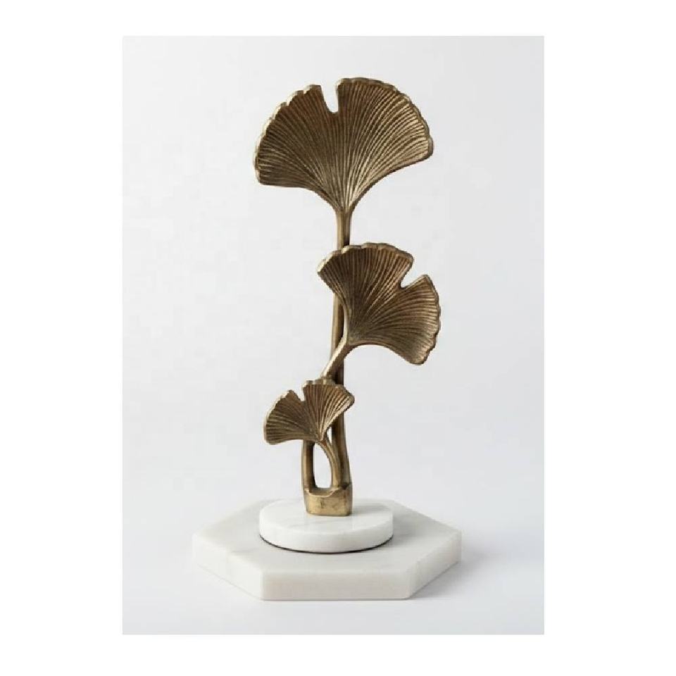 งานประติมากรรมใบแปะก๊วยสีทอง งานหล่อโลหะเคลือบทอง ของตกแต่งบ้านสำหรับชั้นวางหนังสือ โต๊ะกาแฟ เพิ่มความหรูหรา