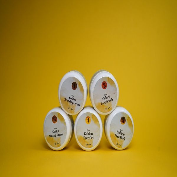 ชุดบำรุงผิวหน้าโกลเด้นโกลว์ 5 in 1 ช่วยให้ผิวกระจ่างใส ประกอบด้วย คลีนเซอร์ สครับ ครีม มาส์กหน้า เซรั่ม ช่วยเพิ่มความเปล่งประกายและความงาม