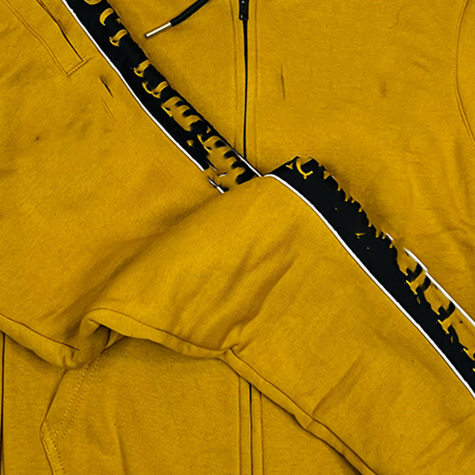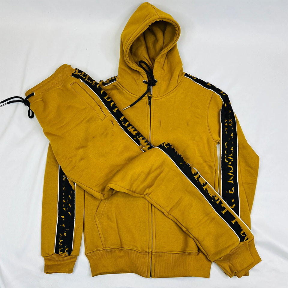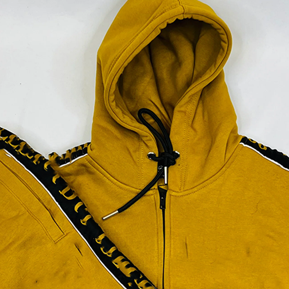 LUXE ชุดวอร์มลำลองสำหรับฤดูหนาวมีฮู้ดแบบมีซิปสีทองมีฮู้ดแบบธรรมดาลายทางสีดำแวววาวแวววาวสีทอง