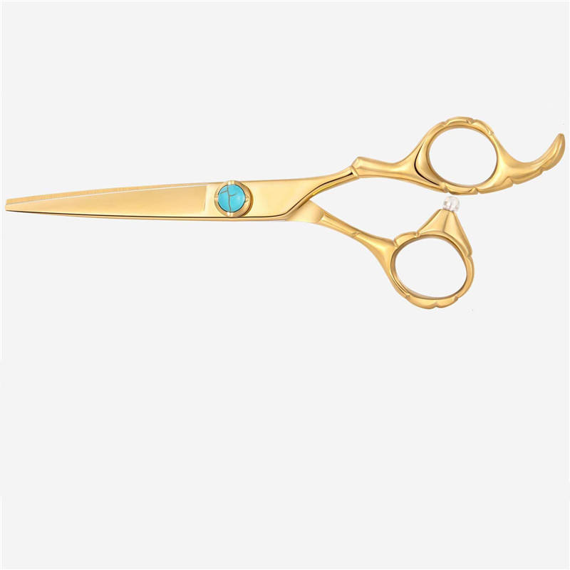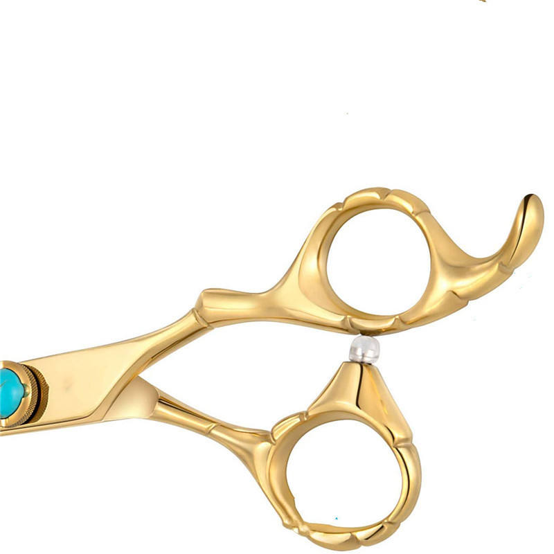 กรรไกรตัดผมสีทอง 6.0 นิ้ว กรรไกรซอยผมสแตนเลสทรงโค้ง สำหรับใช้ในร้านเสริมสวย