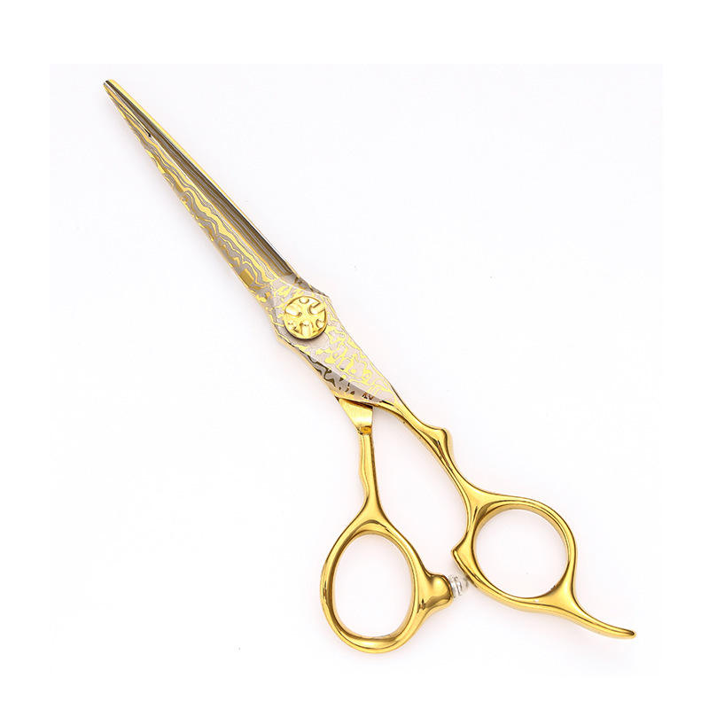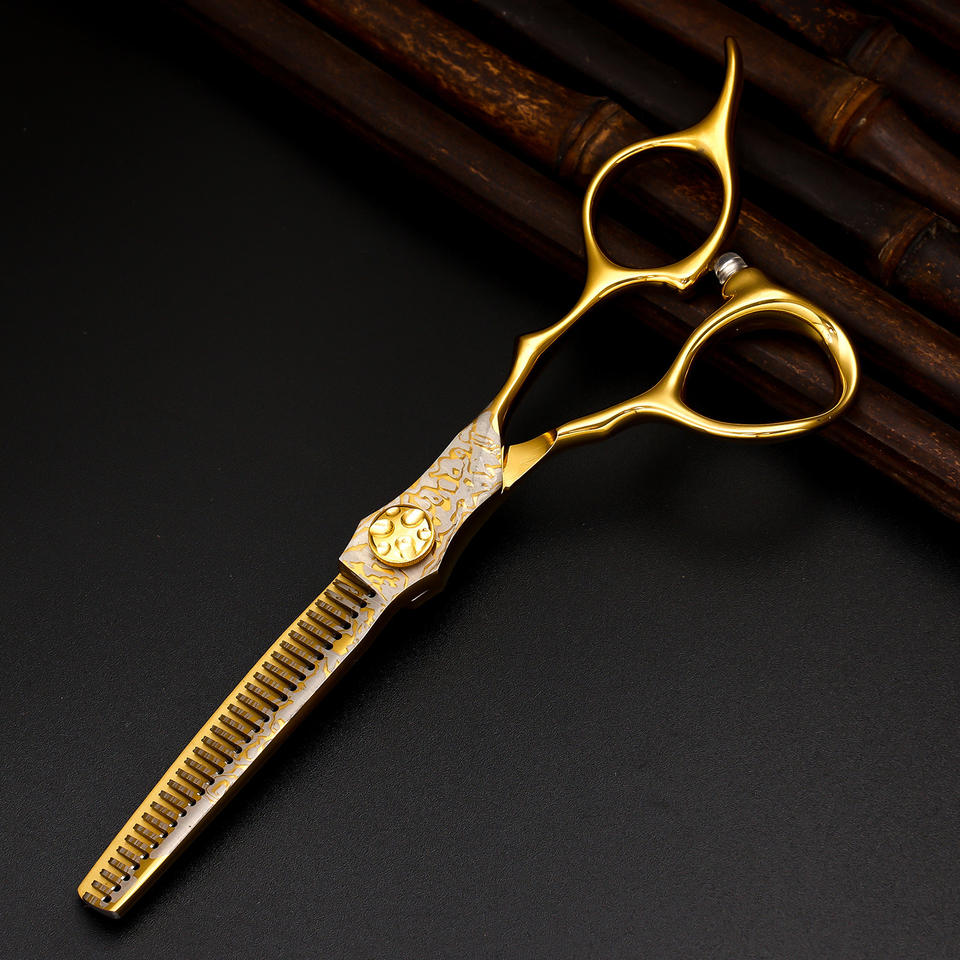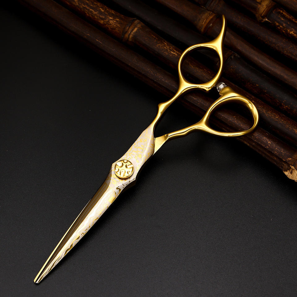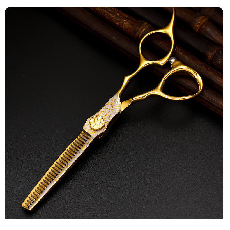 Golden Hair Scissors 62mm Thinning Shears Damascus Pattern Right Handed For Beauty Stylists Suzhou Made