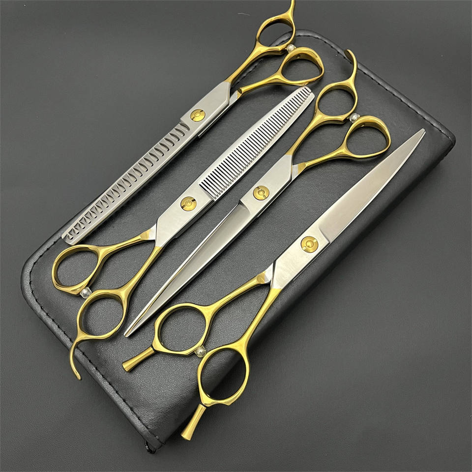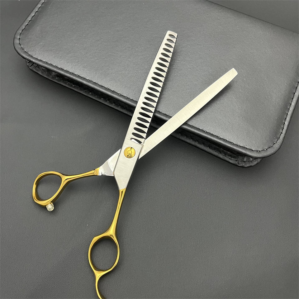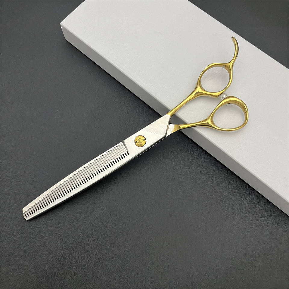 กรรไกรตัดขนสัตว์เลี้ยงด้ามทอง 7 นิ้ว สแตนเลสสตีล ครึ่งสีทองด้าน สำหรับตัดขนสุนัข