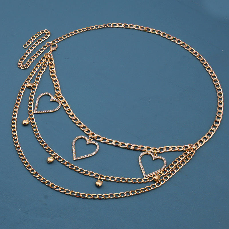 โซ่คาดเอวหลายชั้นโกลเด้นฮาร์ท โลหะผสมสังกะสี ประดับขอบแบบฝัง สำหรับสวมใส่ทุกวัน