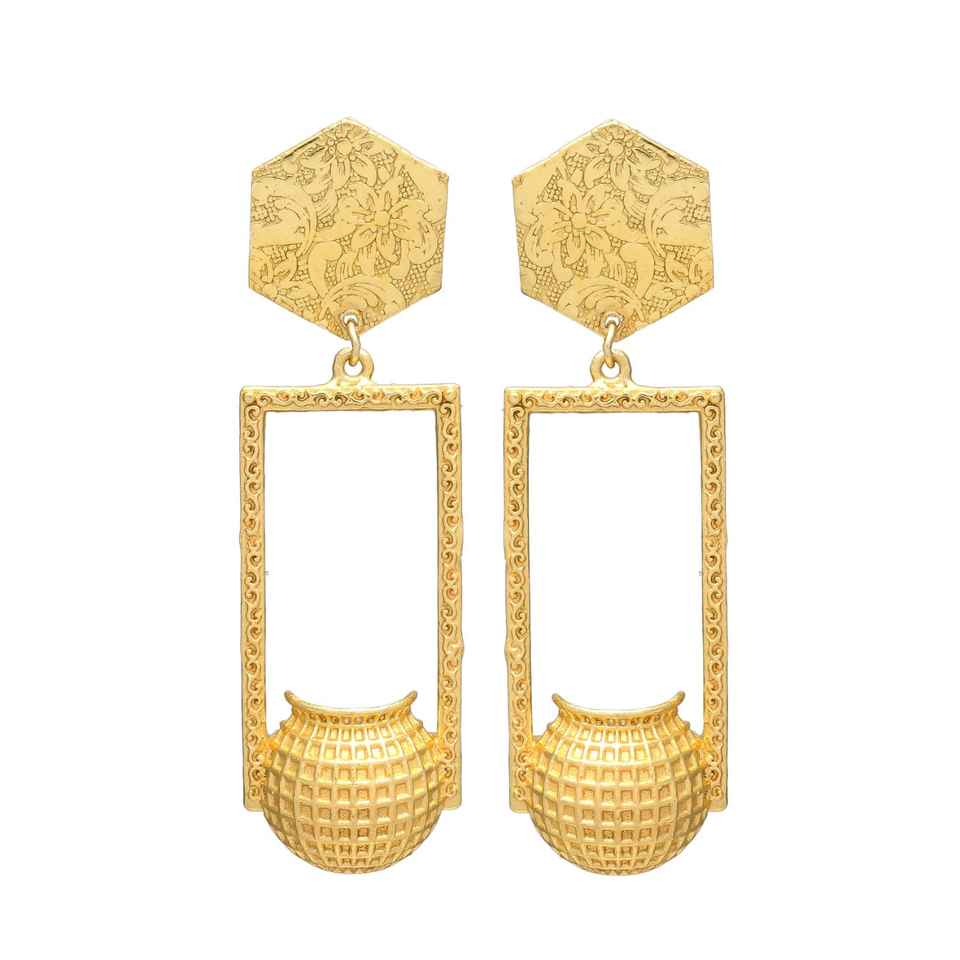 ชุดต่างหูห้อยหม้อหกเหลี่ยมสีทอง
