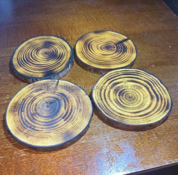 Golden Hive Fusion Wood & Resin Coasters Unique Indian Craft Artisans' Modern Honeycomb Art for Home Decor or Gifts