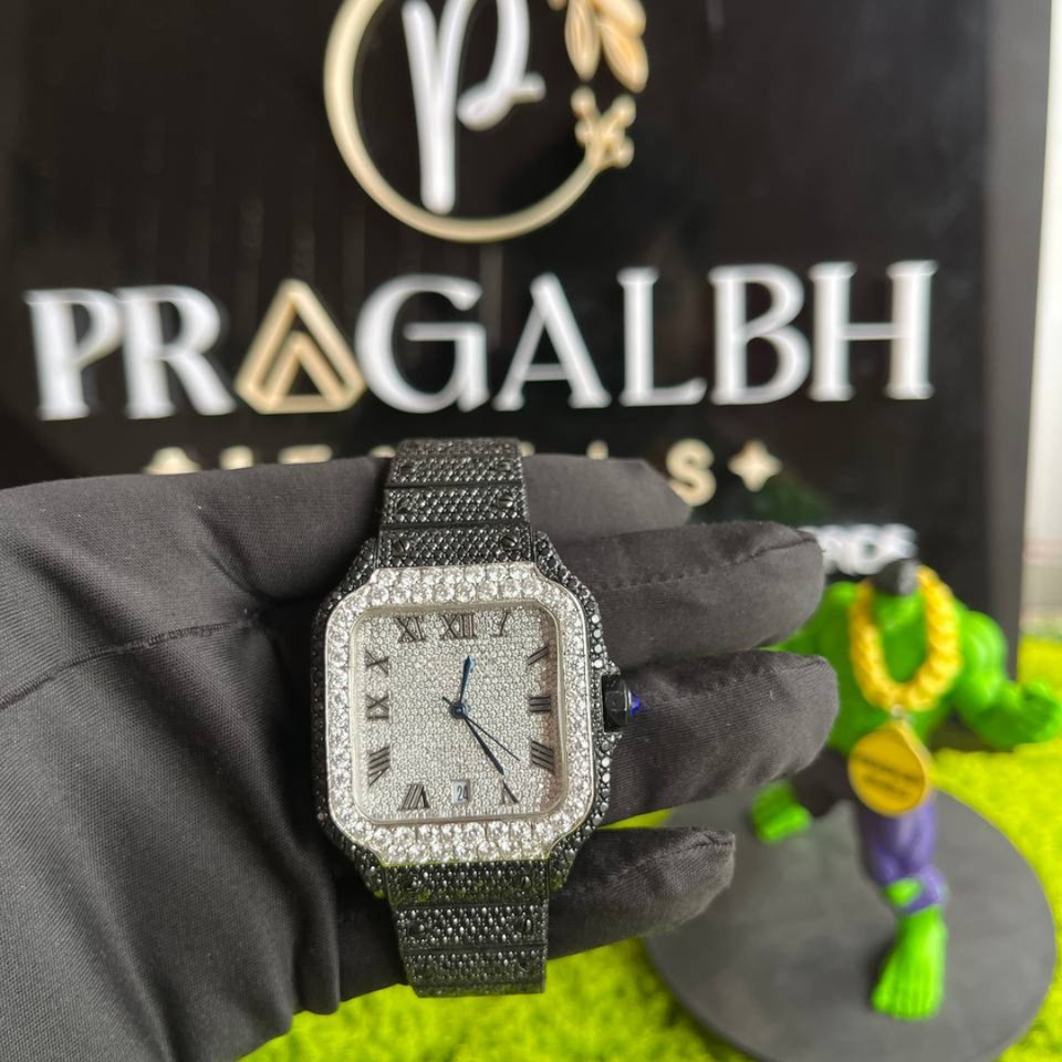 นาฬิกาโมอิสซาไนต์อัตโนมัติ Golden Ice ประดับเพชรเต็มเรือน สำหรับผู้ชาย ระบบอัตโนมัติ หน้าปัดใหญ่ สไตล์ฮิปฮอป ตัวเรือนสแตนเลสสั่งทำพิเศษ