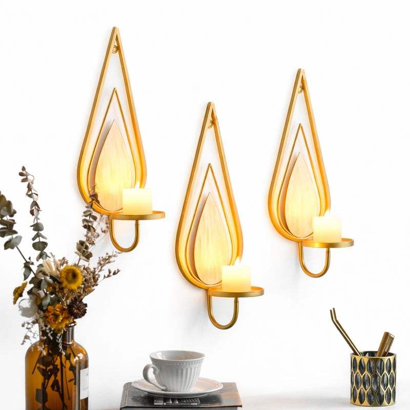 ชุดเชิงเทียนติดผนังโลหะลายใบไม้สีทอง ดีไซน์สไตล์ทรอปิคอล งานแฮนด์เมด ให้แสงอบอุ่น ตกแต่งบ้านอย่างหรูหรา