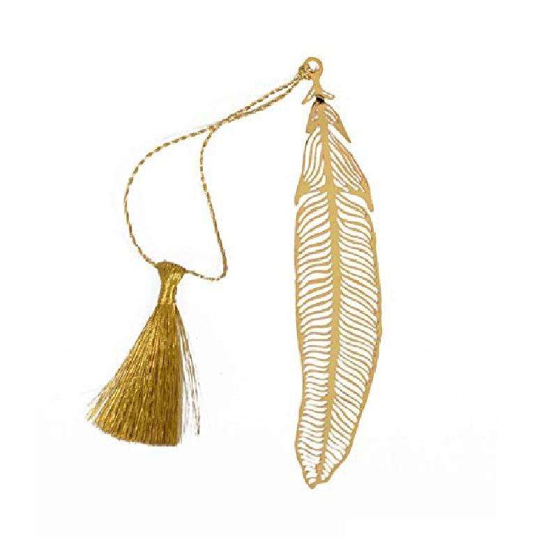 ที่คั่นหนังสือโลหะรูปใบไม้สีทองพร้อมพู่ที่ใส่หน้างานฝีมือสุดหรู