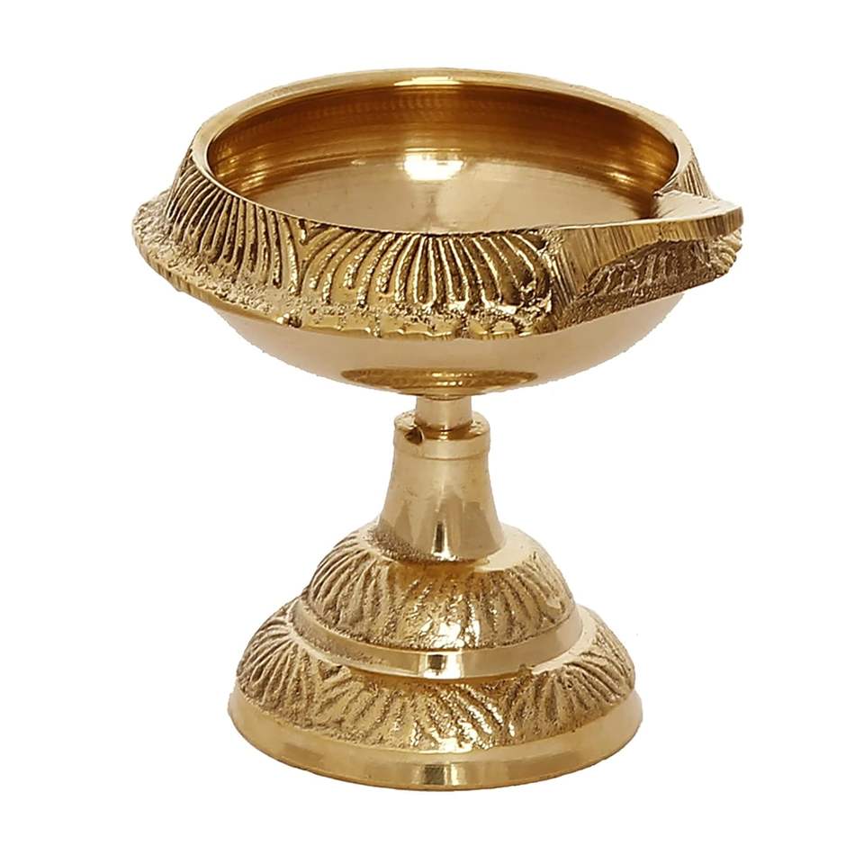 Diya ทองเหลืองสำหรับตกแต่งรูปดอกบัวสีทองสำหรับ Diwali (รูปดอกบัว Diya