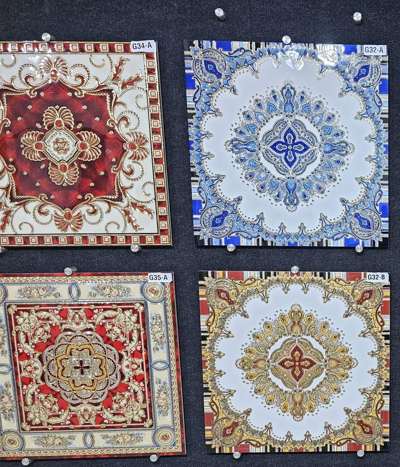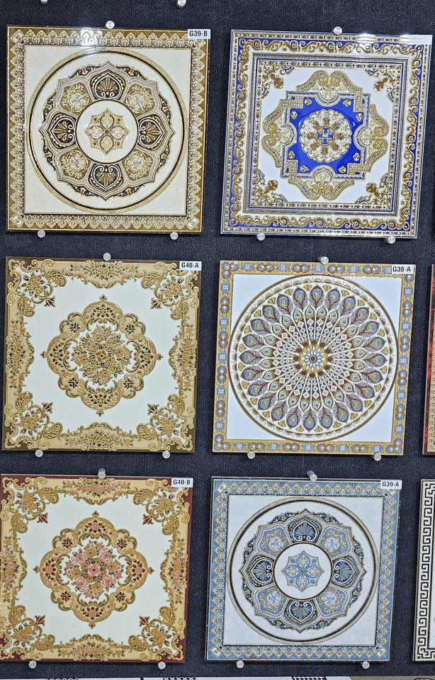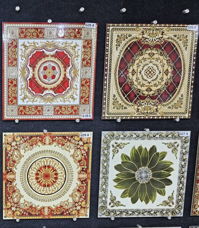กระเบื้องปูพื้นพอร์ซเลนลายดอกไม้3D หรูหราสีทองขัดผนังและพื้นสำหรับใช้ในสำนักงานกระเบื้องปูพื้นแบบพรีเมี่ยม