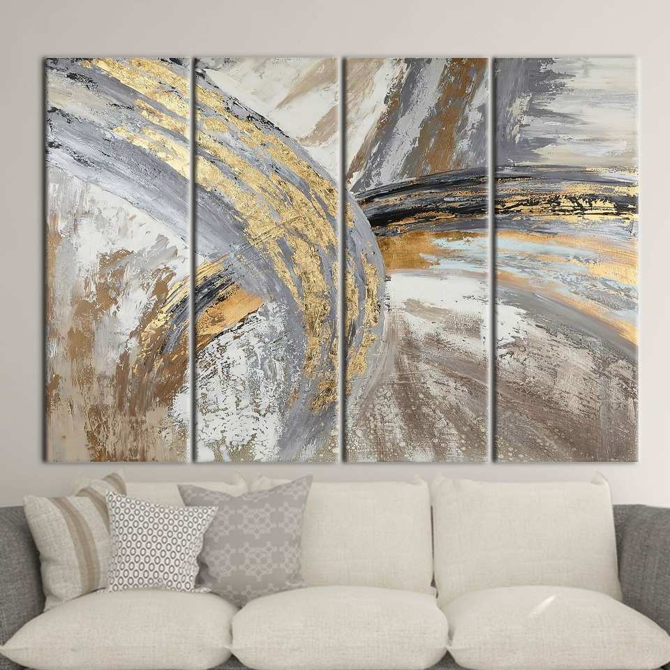 งานศิลปะนามธรรมลายหินอ่อนสีทอง - ภาพพิมพ์บนผ้าใบสำหรับตกแต่งผนังสไตล์ร่วมสมัย,4P: ห่อหุ้มอย่างดี