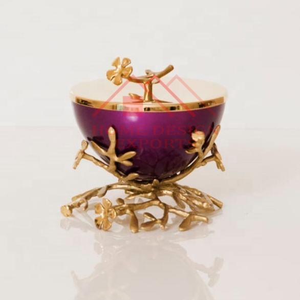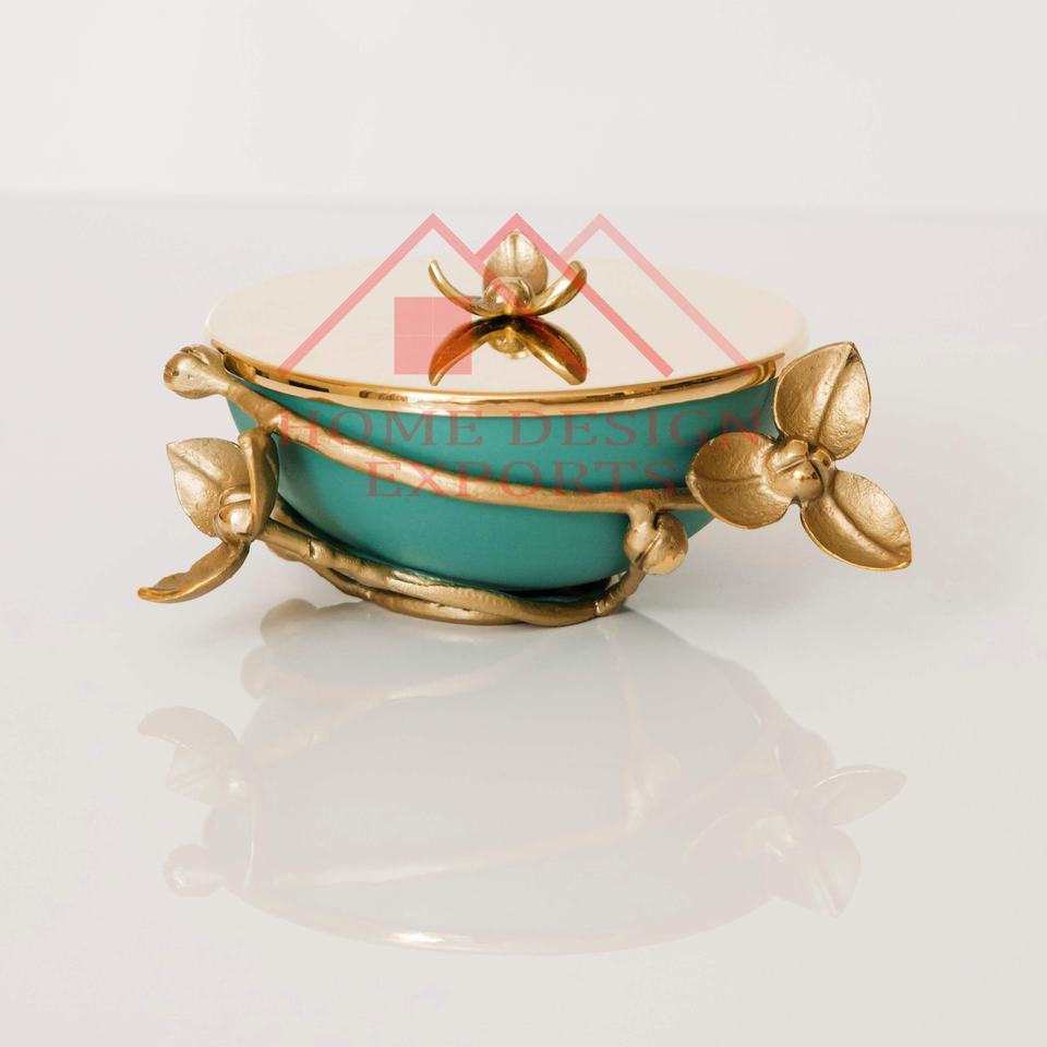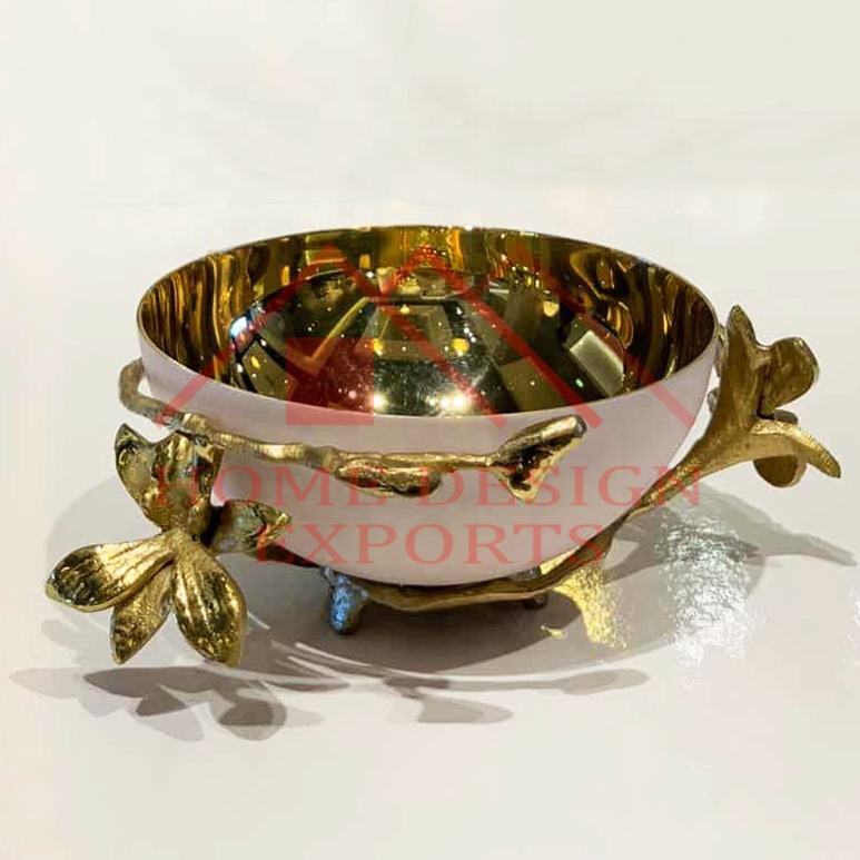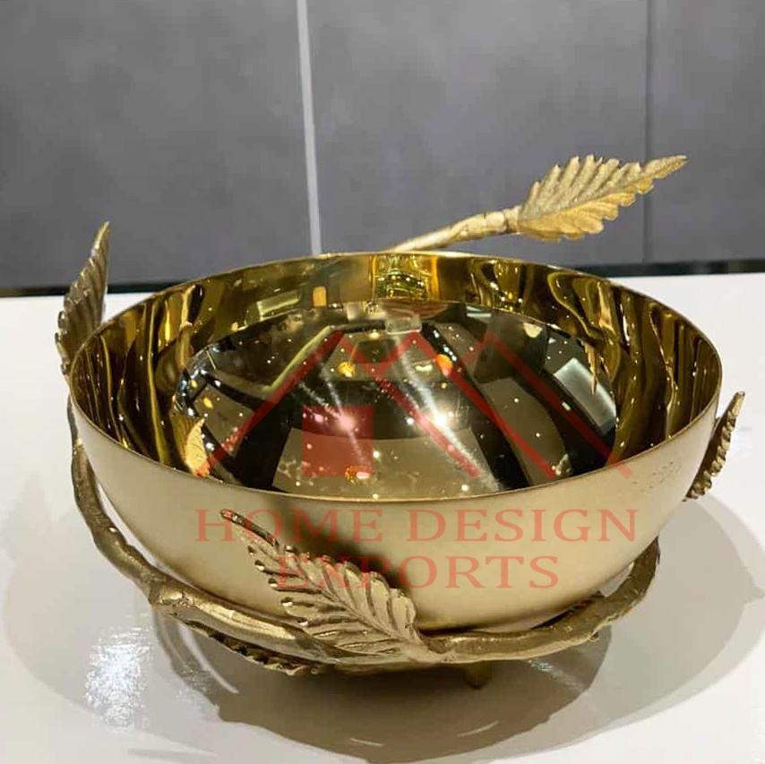 ทองโลหะชามเสิร์ฟที่มีใบยืน