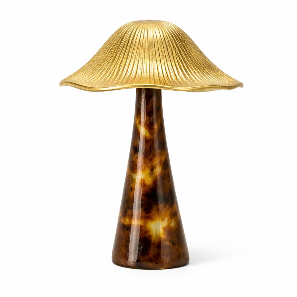 ของตกแต่งโต๊ะรูปเห็ดสีทองพร้อมฐานหินอ่อนสีเบจ เรซิ่นและอะลูมิเนียม ของตกแต่งหรูหราสำหรับการตกแต่งภายในสไตล์โมเดิร์น
