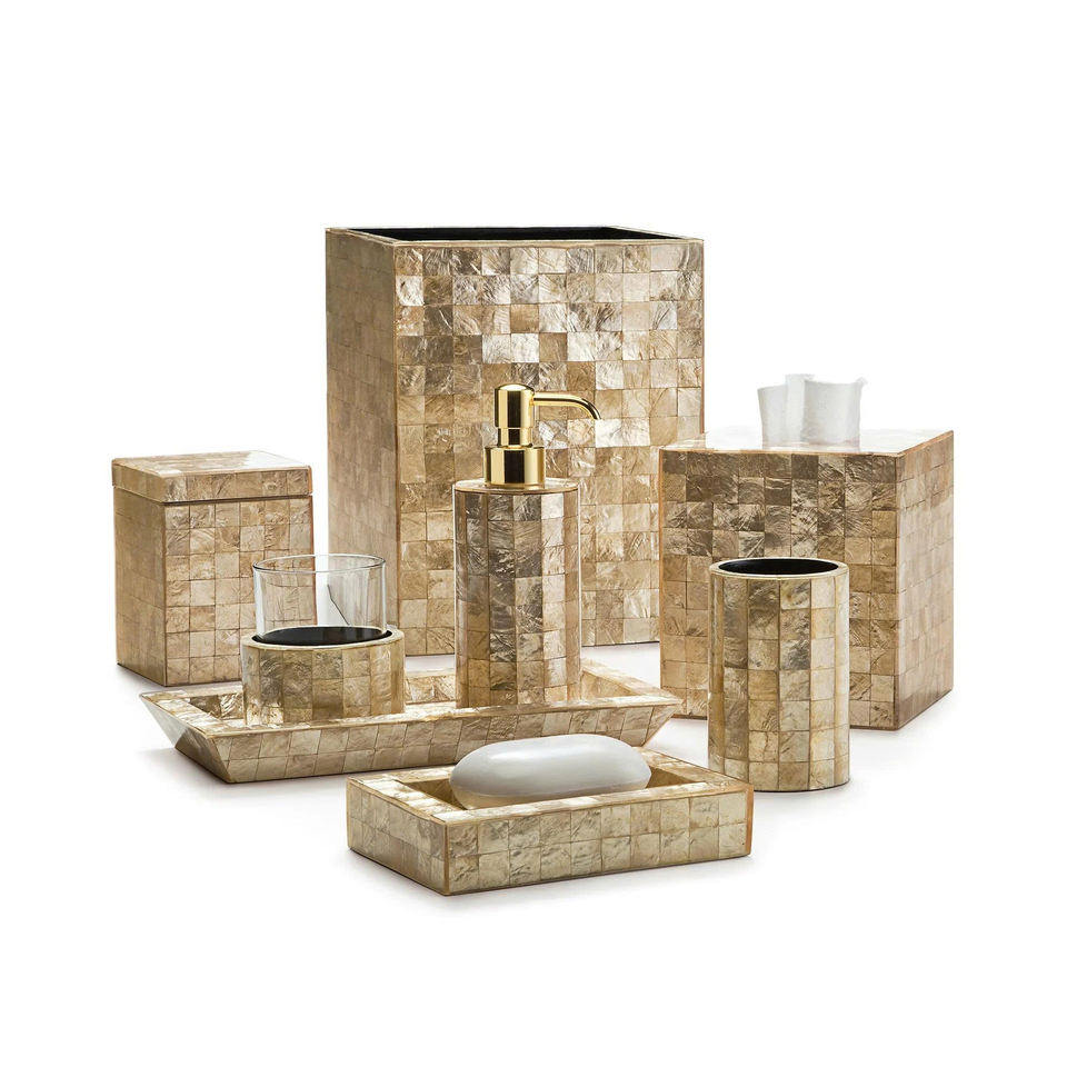 ชุดห้องน้ำมุกธรรมชาติสีทอง งานฝีมือประณีต ประดับเปลือกหอยอย่างหรูหรา สำหรับโรงแรมและวิลล่า