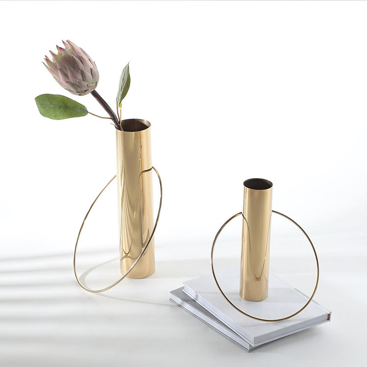 แจกันดอกไม้ลวดดีไซน์ใหม่ล่าสุดสีทองพร้อมภาชนะแก้วแจกันดอกไม้สไตล์ใหม่สุดหรูสำหรับตกแต่งบ้านห้องนั่งเล่น