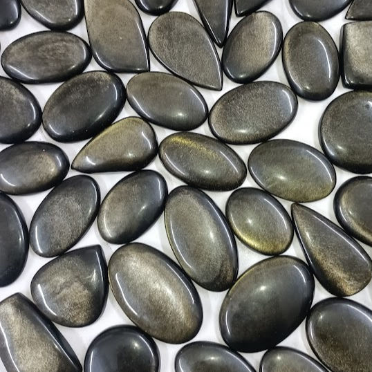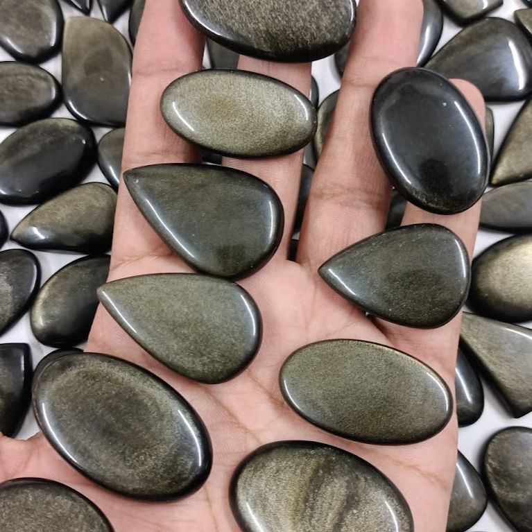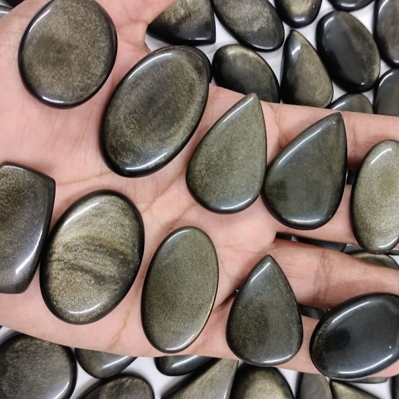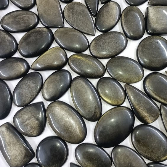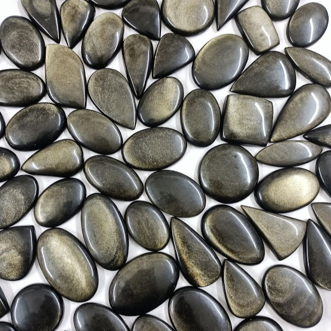 อัญมณีออบซิเดียนสีทองประดับคริสตัลแบบหลวมสองด้านทำสร้อยคอจี้และหินออบซิเดียนสีทองเงางามแบบออบซิเดียน