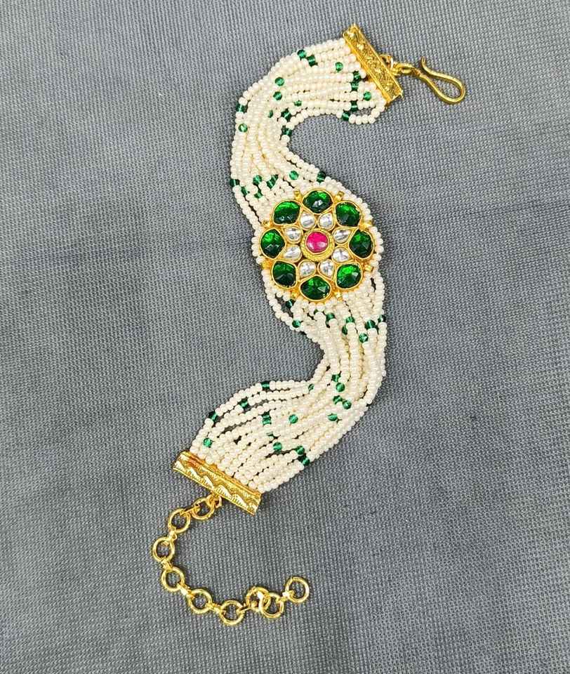 กำไลข้อมือทองคำชุบแบบ Kundan ดีไซน์ทันสมัย ทำจากทองเหลืองประดับด้วยพลอยทับทิม รูปทรงผลไม้ เหมาะสำหรับโอกาสวันครบรอบ-รหัสสินค้า RC 217 H-1