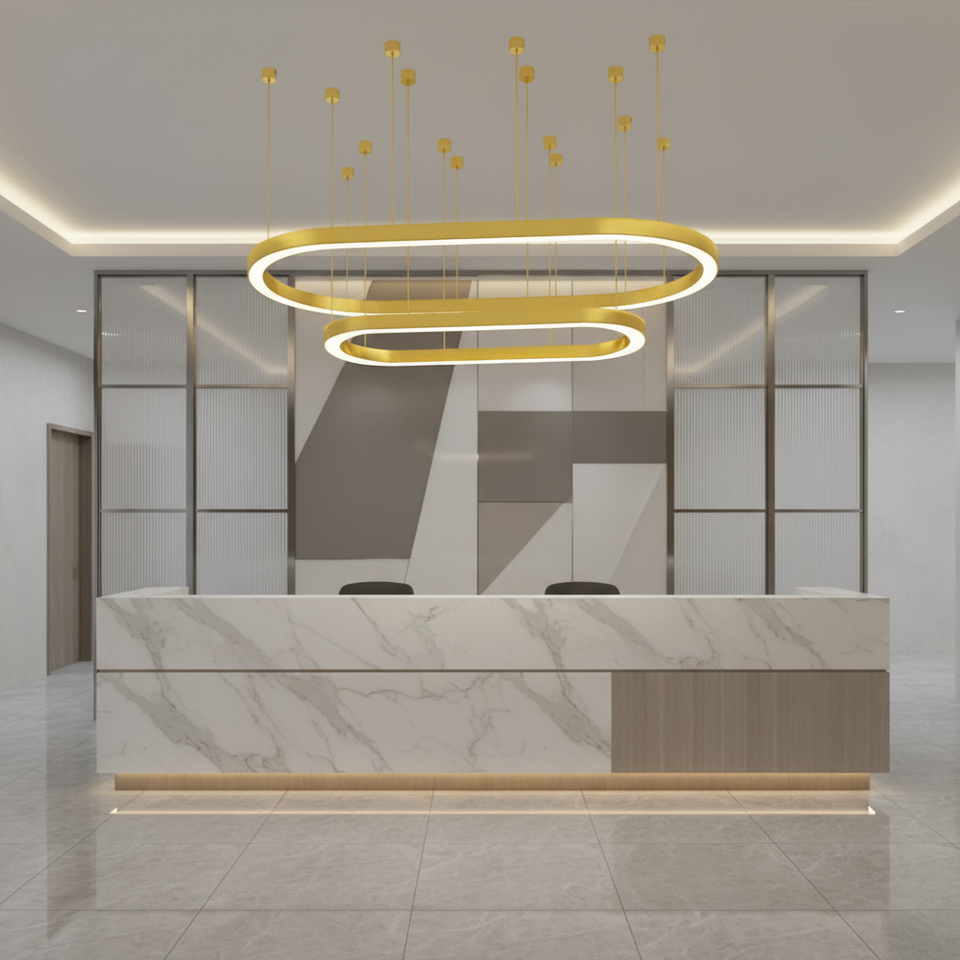 โคมไฟวงแหวนรูปไข่สีทองสำหรับงานต้อนรับ, ล็อบบี้, ซูเปอร์มาร์เก็ต, โครงการวิศวกรรมห้างสรรพสินค้า