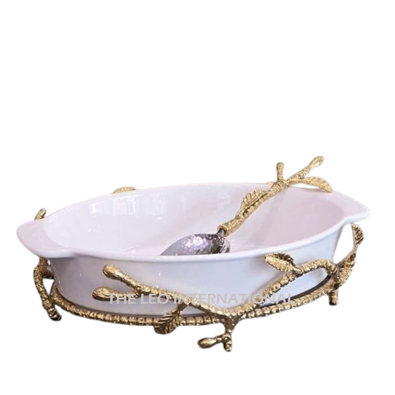 ชามอลูมิเนียมเคลือบทองดีไซน์รูปใบไม้ทำจากวัสดุเรซินสำหรับเสิร์ฟอาหารผลไม้ชามตกแต่งบ้าน