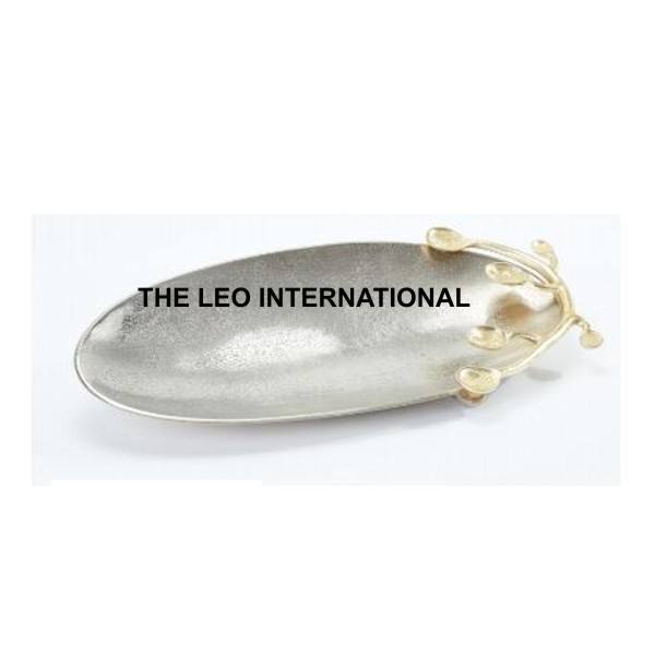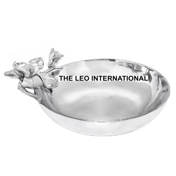ชามอลูมิเนียมโลหะสำหรับตกแต่งฐานทรงกลมดีไซน์รูปใบไม้ชุบทองชามเสิร์ฟถั่วที่ไม่เหมือนใคร