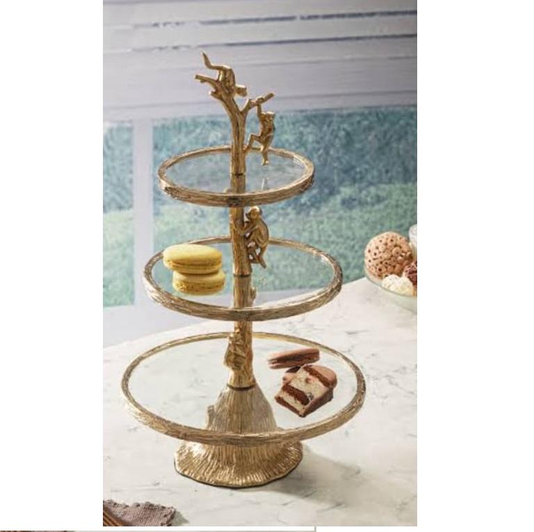 ฐานวางเค้กโลหะเคลือบทองคำ ขอบโลหะ ทนทาน เป็นมิตรกับสิ่งแวดล้อม ทำจากโลหะและแก้ว เหมาะสำหรับเสิร์ฟเค้กวันเกิด ของหวาน สำหรับตกแต่งโรงแรม ร้านอาหาร