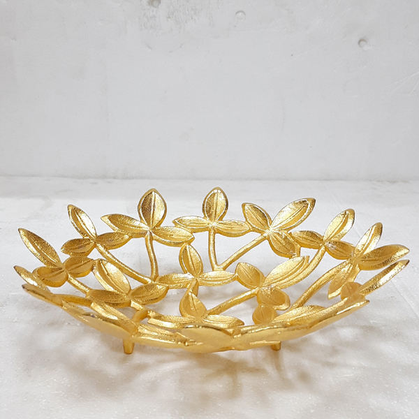 จานและจานทรงถั่วจานคลาสสิกดีไซน์รูปต้นไม้ชุบทองสแตนเลสโลหะทองเหลืองช็อคโกแลตขนมหวาน