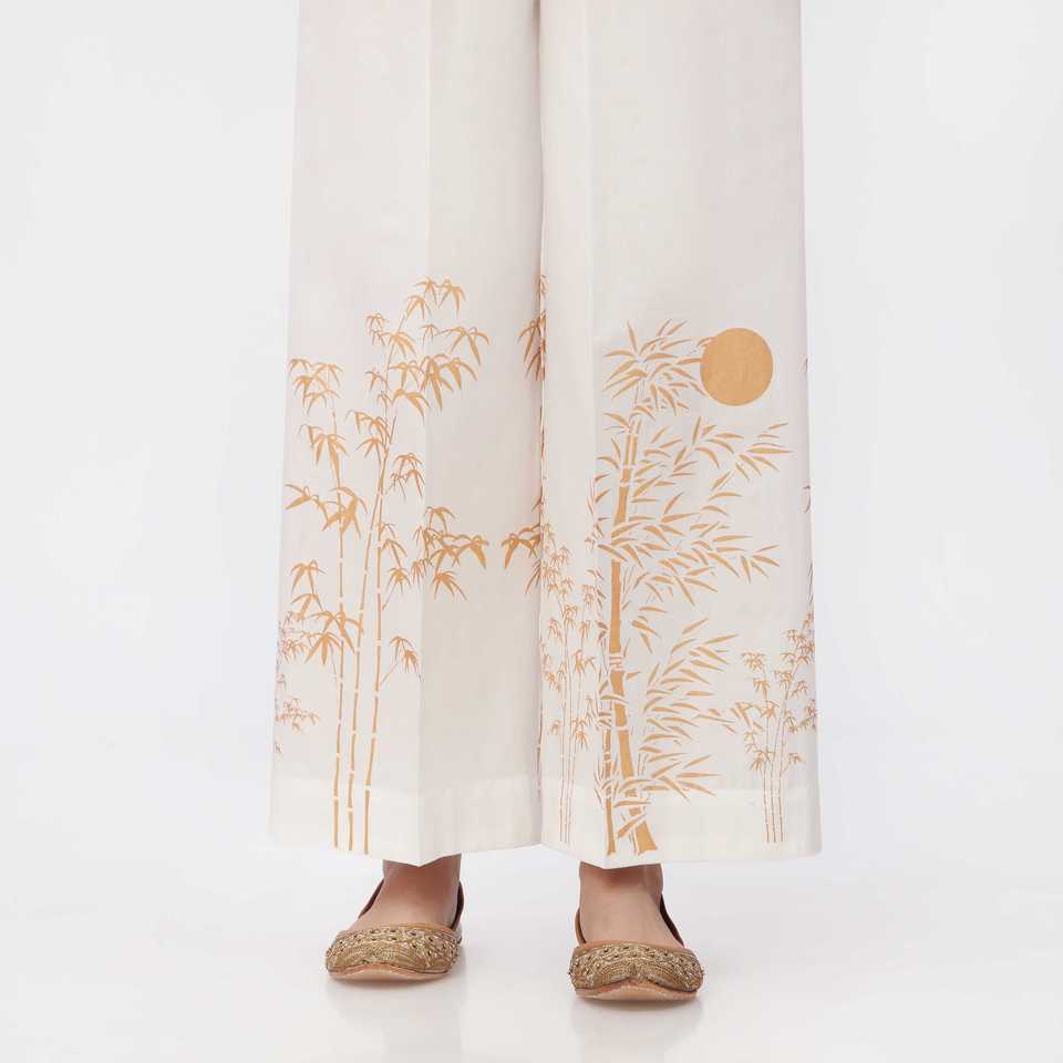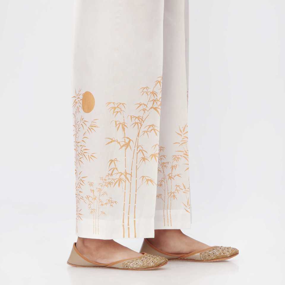 กางเกงขากล้องขาตรงพิมพ์ลายสีทองขนาด PS3556 XS