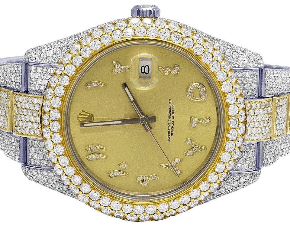 นาฬิกาควอตซ์สแตนเลสสตีลอัตโนมัติสีทองของผู้ชายคุณภาพดี VVS1มอยส์ซอไนต์พร้อมกระจกสไตล์ฮิปฮอปเครื่องประดับแฟชั่น