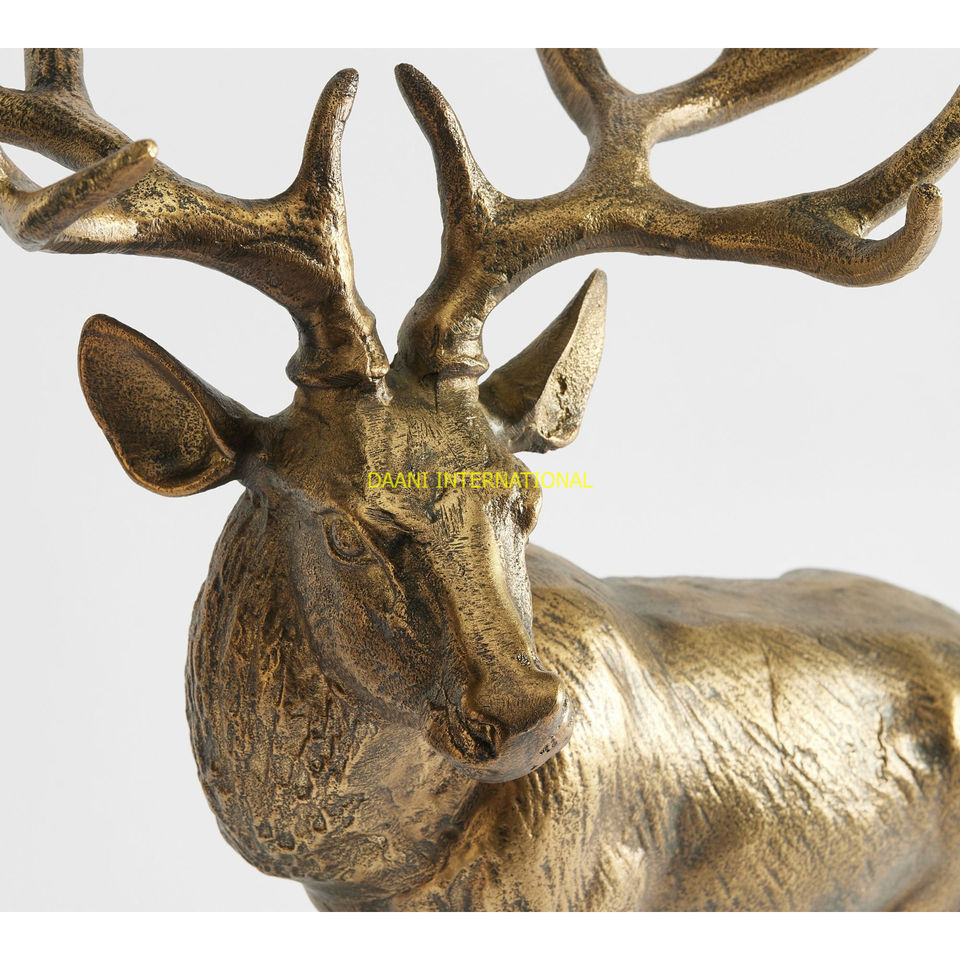 รูปปั้นกวางเรนเดียร์สีทองหรูหรารูปปั้นกวางทำจากทองเหลืองมีรายละเอียดรูปปั้นสัตว์ป่าการตกแต่งบ้านที่สง่างามของสะสม