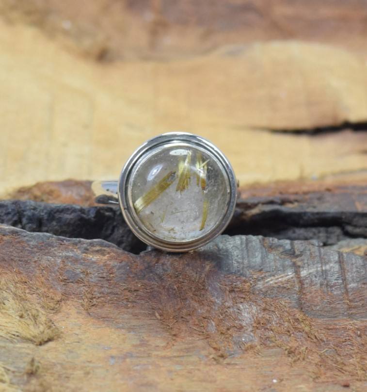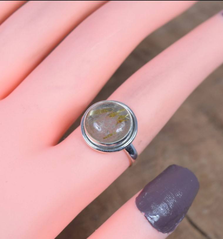 แหวนพลอยอัญมณีทรงหลังเบี้ยขนาด12มม. 925แข็งทำด้วยมือเงินแท้ขอบทองแบบคลาสสิก