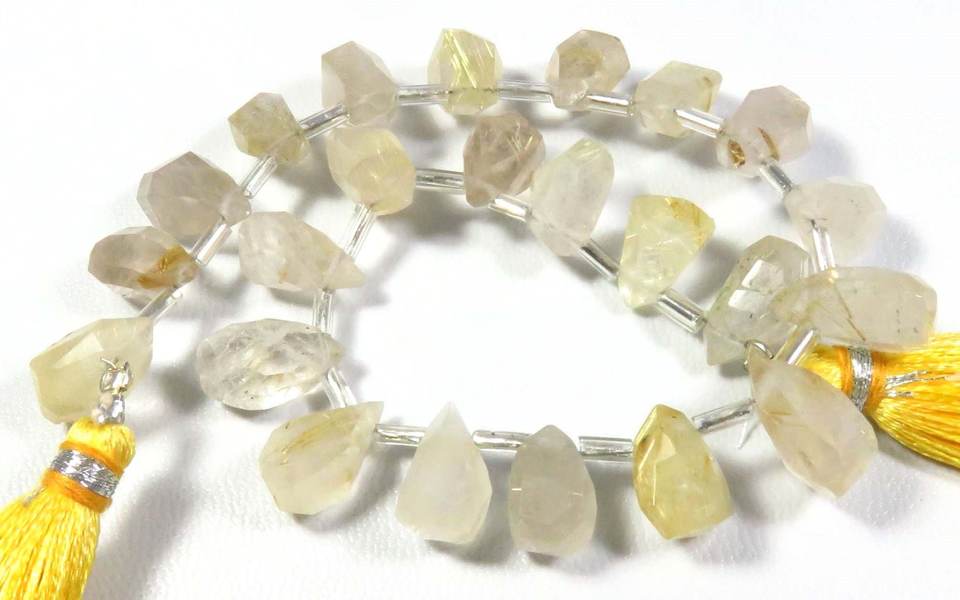 แร่ควอทซ์สีทองรูไทล์สีทอง8 \ "เพชรพลอยหลวมเจียระไนแบบเหลี่ยมเพชรพลอยธรรมชาติขนาด10.5-14มม. ลูกปัดควอตซ์สีทองธรรมชาติทรงหยดน้ำตา"