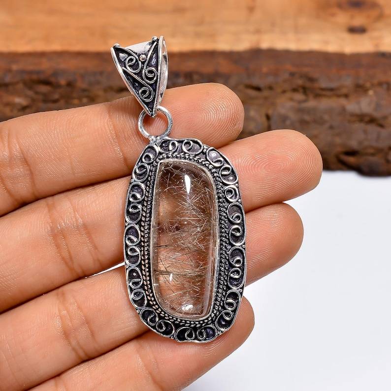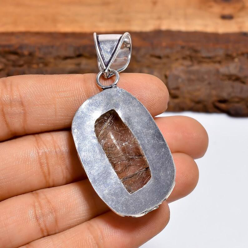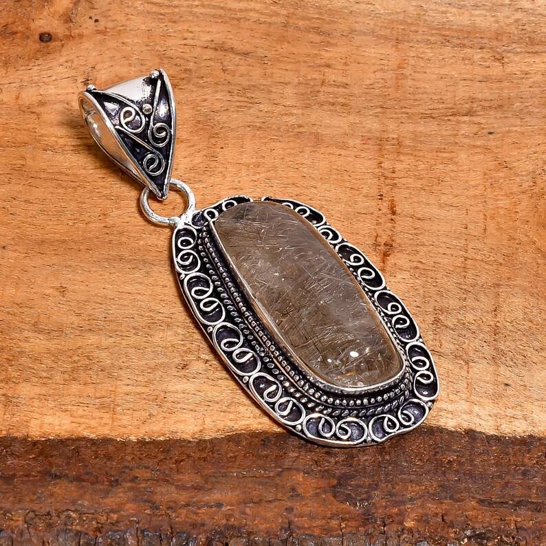 จี้หินควอตซ์รูไทล์สีทอง งานแฮนด์เมด เงินแท้ 925 สไตล์โบฮีเมียน ของขวัญสำหรับผู้หญิง