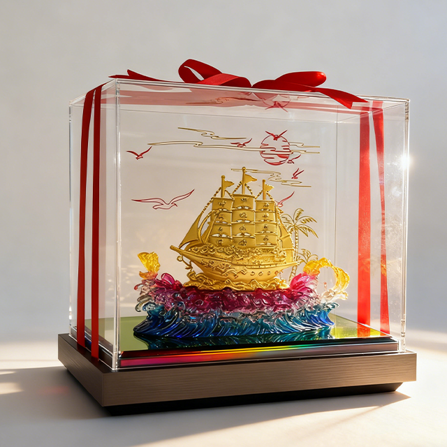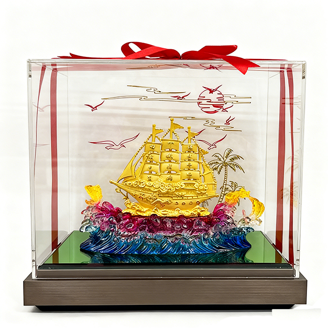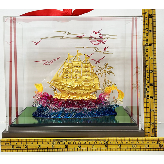 เครื่องประดับเรือใบสีทองรูปเรือใบเรียบๆรูปปั้นฮวงจุ้ยความมั่งคั่งสำหรับเป็นของขวัญเปิดธุรกิจ