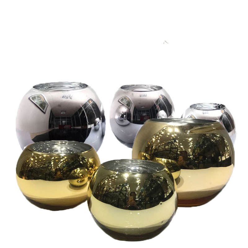 แจกันแก้วทรงกลมสีเงินสีทองแจกันดอกไม้ไฮโดรโพนิกสำหรับบ้านและสำนักงาน