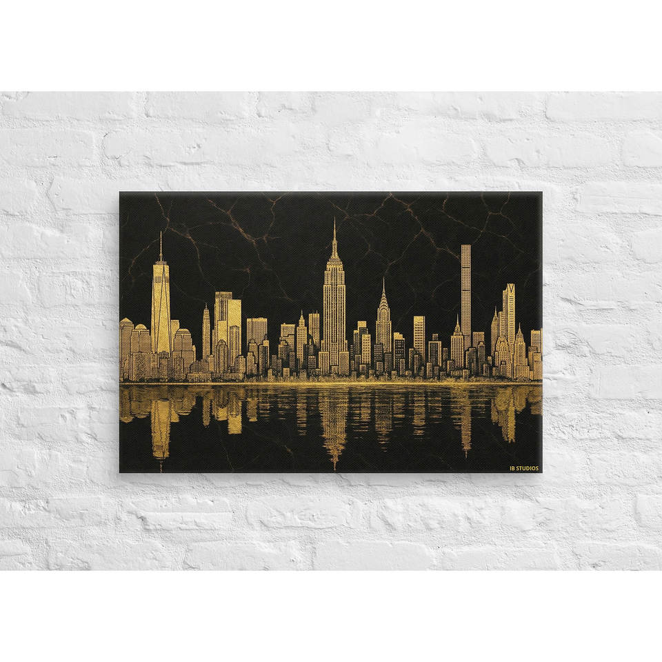 Golden Skyline XL Black & Gold Cityscape Poly-cotton Blend Canvas Mansion Edition Wall Accent 1.25cm Thick