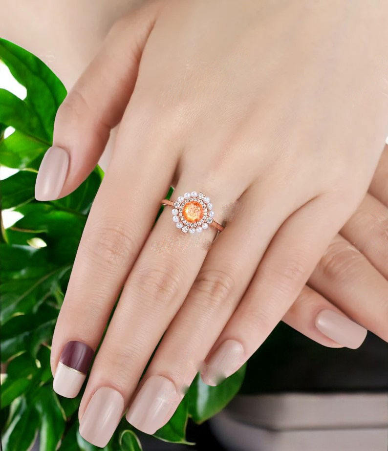 แหวนเงินสเตอริงของผู้หญิง925ชุบทองแบบซันสโตนดีไซน์คลาสสิกทันสมัยมีง่ามสำหรับงานแต่งงานครบรอบวันเกิด