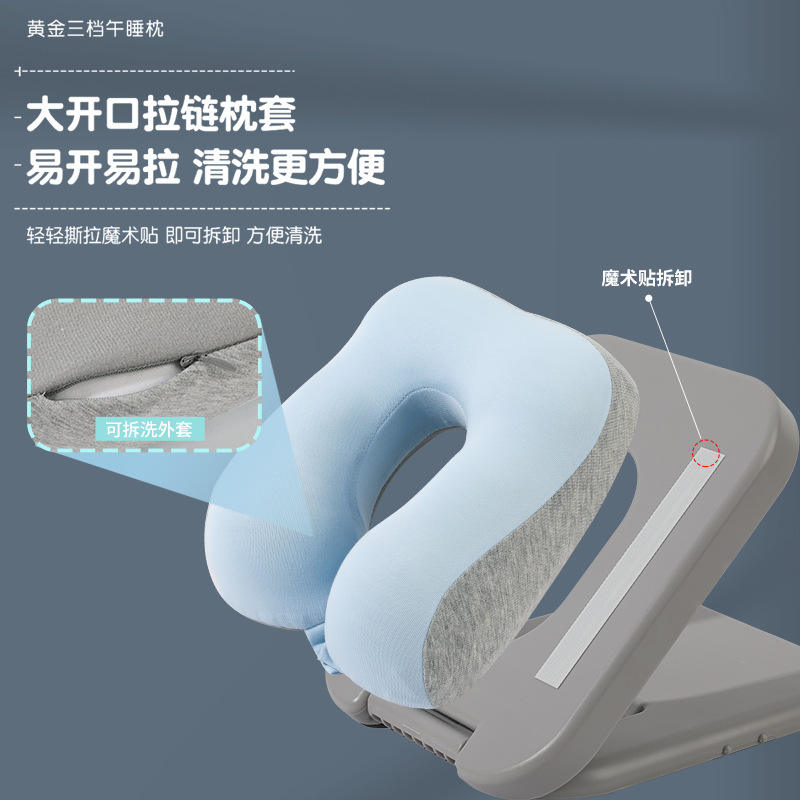 หมอนรองคอรูปตัวยูสามชั้นสีทอง ทำจากเมมโมรี่โฟม พกพาสะดวก ถอดประกอบได้ เหมาะสำหรับนักเรียน