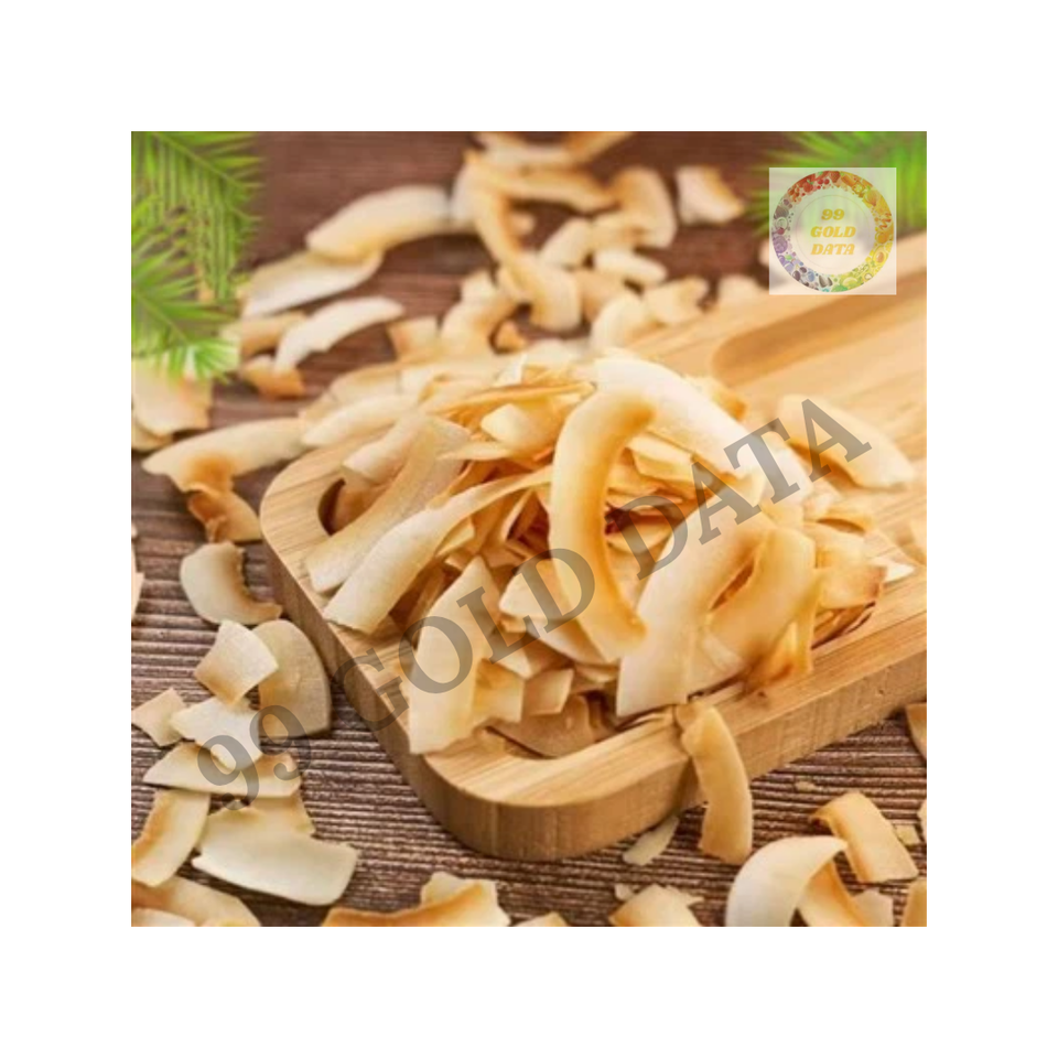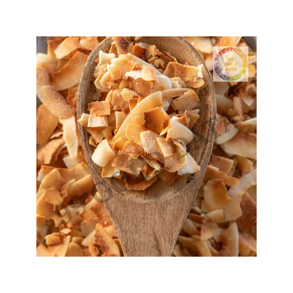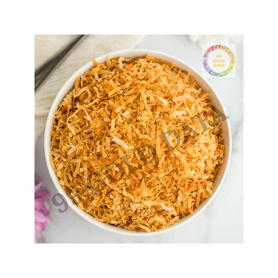 เกล็ดมะพร้าวปิ้งสีทองที่ผลิตในเวียดนามและมีมาตรฐานสูงสำหรับใช้ในท็อปปิ้งของว่างเพื่อสุขภาพและอาหารสำเร็จรูป