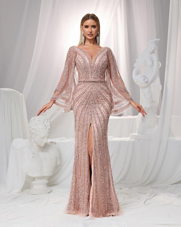 ชุดราตรีทรงเอไลน์ผ้าซาตินสีทองอร่ามสำหรับงานปาร์ตี้ ชุดเดรสสีทองแบบไหล่เดียว ดีไซน์ผ้าพลิ้วประดับเพชรพลอย ผ่าขาสูงเหนือเข่า ช่วงเอว
