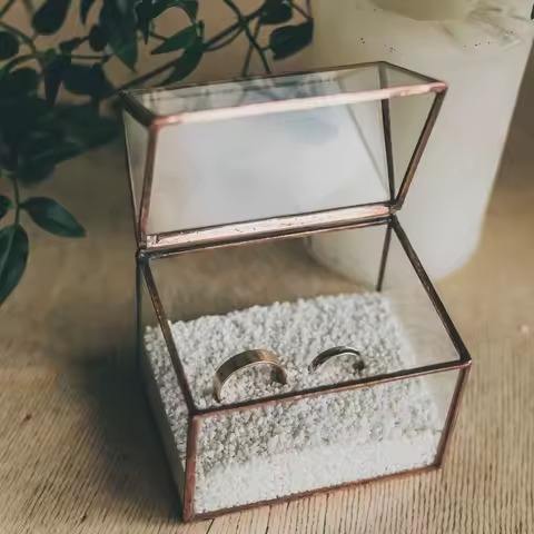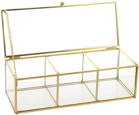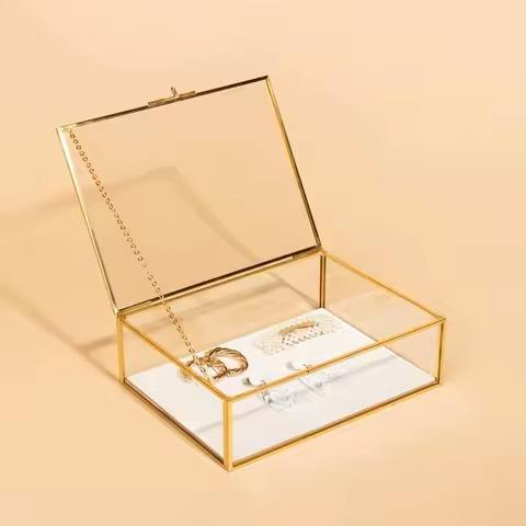 กล่องแก้ววินเทจสีทองใส & ทองเหลืองที่เก็บเครื่องประดับและเครื่องสำอางที่เก็บลิปสติก