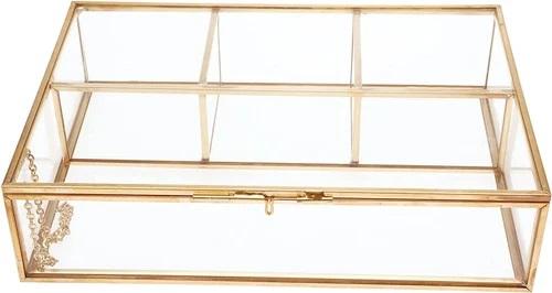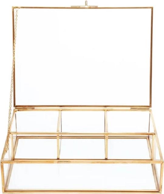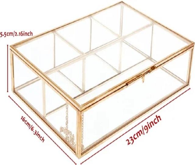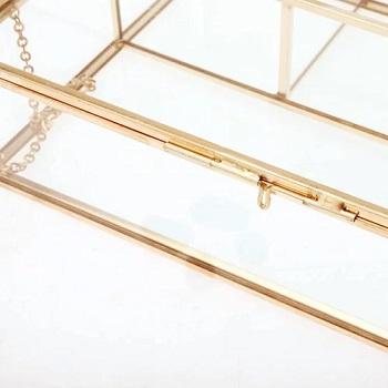 กล่องแก้วฝาปิดวินเทจสีทองสำหรับตกแต่งแสดงเครื่องประดับกล่องสี่เหลี่ยมใสขนาดใหญ่เฉพาะบุคคล