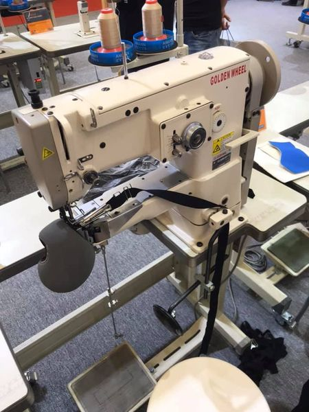 จักรเย็บผ้าแบบวงกลมซิกแซก2จุดแบบเข็มแบนเข็มเดี่ยวสีทอง2450N เย็บเว็ทสูทรองเท้าผ้าใบกันน้ำ